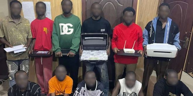 The Ghana Immigration Service’s (GIS) Weija Sector Command has arrested 11 foreign nationals for their alleged involvement in cyber fraud and counterfeit money printing at a domestic apartment in Tuba, Accra.
