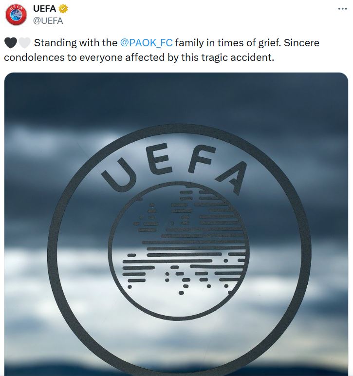 “Sincere condolences to everyone affected by this tragic accident, ” UEFA said in a statement on X, adding that it stands with the “PAOK family in times of grief.